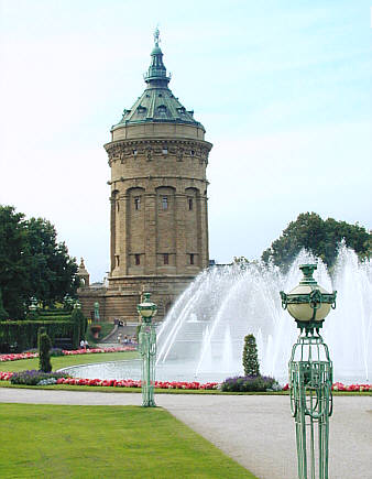 Der Wasserturm, Mittelpunkt des Friedrichsplatzes mit der größten zusammenhängenden Jugendstilanlage der Bundesrepublik Deutschland, gilt als Wahrzeichen Mannheims. Mit 19 m Breite und 60 m Höhe ist er ein monumentales Denkmal.